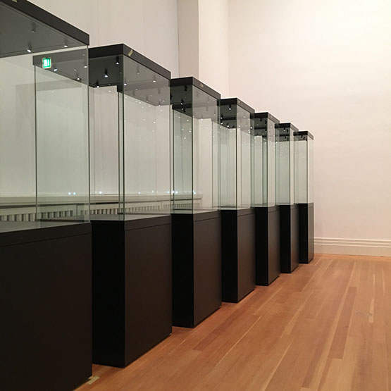 Leistungsumfang Bereitstellung 100 Vitrinen und 35 Podeste/Großsockel, Anstricharbeiten, Herstellung von Halter- u. Sicherungssystemen, Mount-Making, Objekteinbringung, Montage Ausstellungsgrafik, Ausstellungsbeleuchtung, Transporte, Einlagerung, Entsorgungsarbeiten.