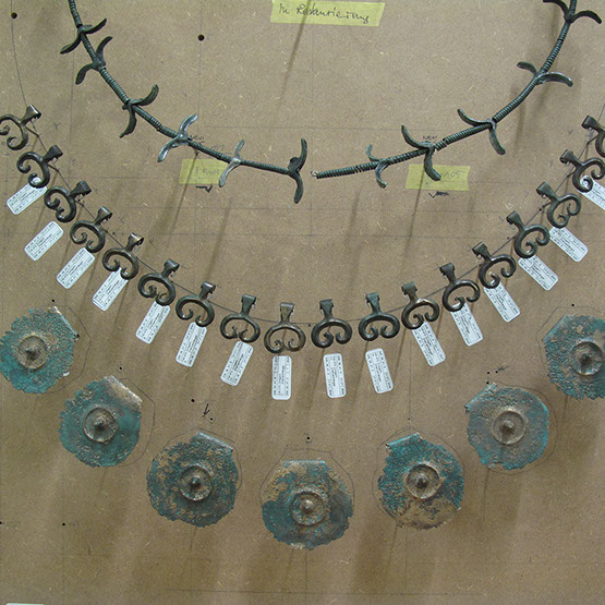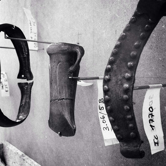 Anwendung von konservatorischen Hilfsmitteln zur Präsentation von Museumgut als Kontakt- bzw. Rutschschutz (Filz, Hostaphan, Zellgummi)