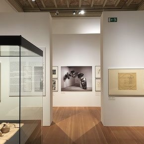 Leistungsumfang Bereitstellung 30 Vitrinen, Errichten von Podestflächen, Ausstellungsaufbau, inkl. Hängen der Bilder, 40 Blow-Ups auf Re-board®-Platte, Aufbau 1:5-Modell der „Surrealist Gallery“ und der Rekonstruktionsmodelle von Kieslers Leger- und Träger-Systeme, zahlreiche Architekturmodelle, Sonderhängungen, wie die „Galaxy Paintings“, Aufbau der „Mobile Home Library“ und Stellen verschiedener Möbel in den Räumen. Abbau inkl. Verpacken der Arbeiten.