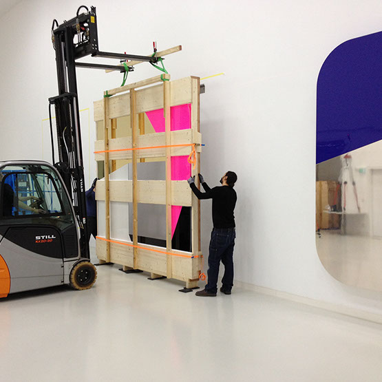 Leistungsumfang Installation, Sondermontagen, Neonarbeiten, Grafik, Ausstellungsbeleuchtung, Verpacken der Exponate