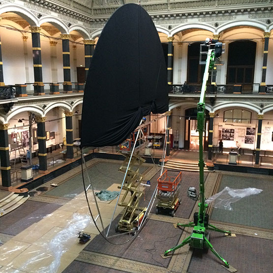 Leistungsumfang Beratung, Datenbankentwicklung, CAD-gestützte Planung, Auf- und Abbau Ausstellungswände, Produktion von Exponaten, Rauminstallationen, Arthandling, Installation von Zeit- und Intervallschaltungen, Medieninstallationen, Sondermontage 12m Kreisscheibe, Grafik, Ausstellungsbeleuchtung, Verpacken der Exponate