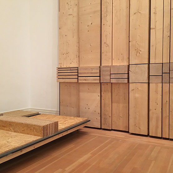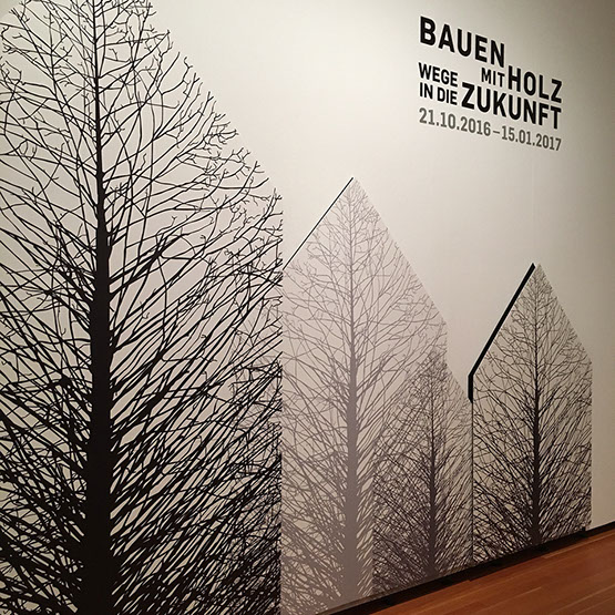 Ausstellungsbeschreibung Anhand von internationalen und nationalen herausragenden Projekten zeigt die Ausstellung ökologisch-nachhaltige und aktuelle Positionen der Holz-Baukunst und modernen Holzarchitektur. Präsentiert werden spektakuläre Projekte von Toyo Ito, Shigeru Ban oder Frei Otto ebenso wie richtungsweisende urbane Holz-Wohnbauten, beispielsweise von Kaden & Klingbeil in Berlin/Prenzlauer Berg, sowie die neuesten Tendenzen des Bauens mit Holz über der Hochhausgrenze. Großformatige Modelle werden durch Pläne, Texte und Fotographien umfangreich begleitet.