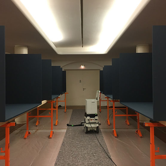 Leistungsumfang Bereitstellung 100 Vitrinen und 35 Podeste/Großsockel, Anstricharbeiten, Herstellung von Halter- u. Sicherungssystemen, Mount-Making, Objekteinbringung, Montage Ausstellungsgrafik, Ausstellungsbeleuchtung, Transporte, Einlagerung, Entsorgungsarbeiten.