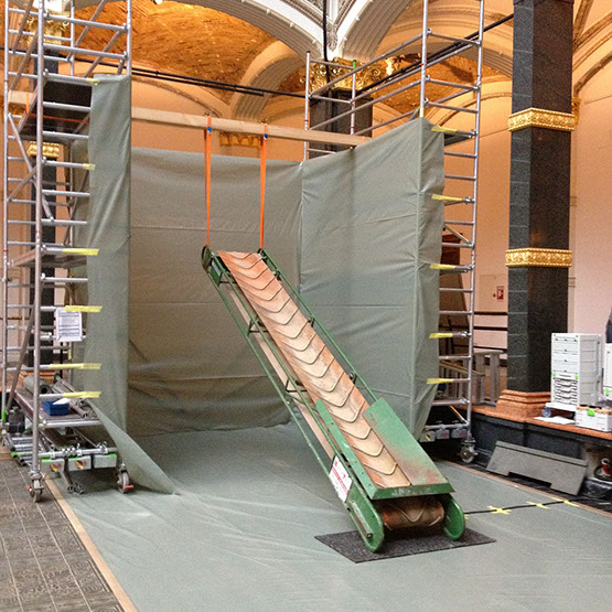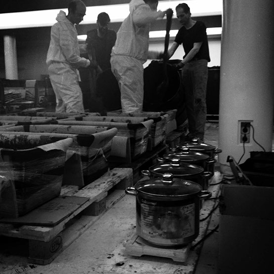 Leistungsumfang Produktion von 1600 Wachsblöcken (100.000 kg), Logistische Lagerverwaltung Wachsblöcke und termingerehtes Auflegen auf Förderbänder („Symphony for Beloved Sun“), 6-monatiger Betrieb Installation „Shooting into the Corner“ im 20-Minuten-Takt, Grafik, Ausstellungsbeleuchtung, Abbau Exponate