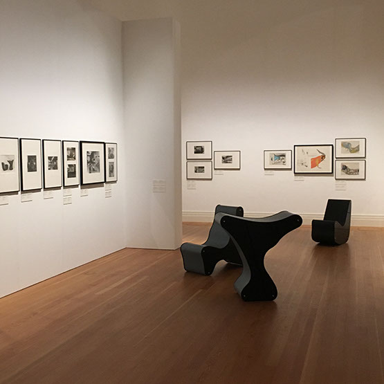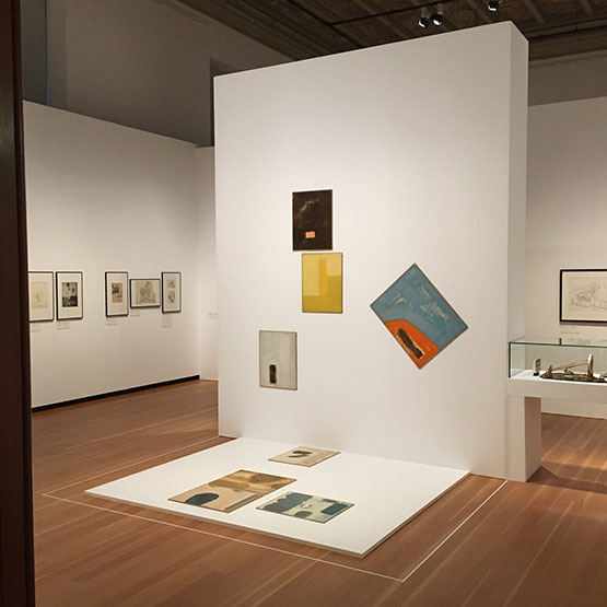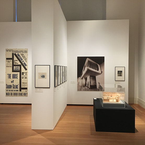 Leistungsumfang Bereitstellung 30 Vitrinen, Errichten von Podestflächen, Ausstellungsaufbau, inkl. Hängen der Bilder, 40 Blow-Ups auf Re-board®-Platte, Aufbau 1:5-Modell der „Surrealist Gallery“ und der Rekonstruktionsmodelle von Kieslers Leger- und Träger-Systeme, zahlreiche Architekturmodelle, Sonderhängungen, wie die „Galaxy Paintings“, Aufbau der „Mobile Home Library“ und Stellen verschiedener Möbel in den Räumen. Abbau inkl. Verpacken der Arbeiten.