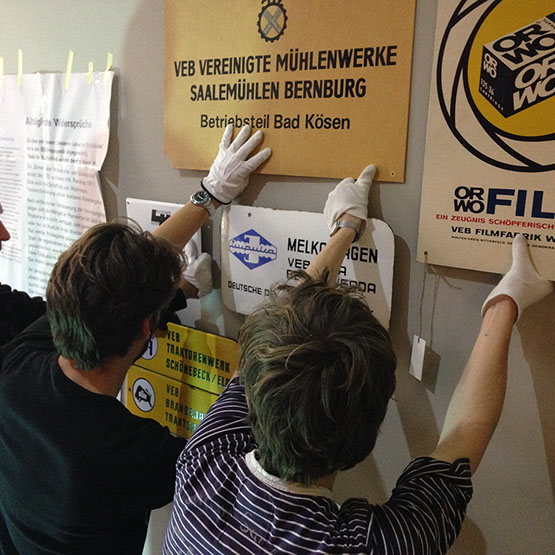 Anwendung von konservatorischen Hilfsmitteln zur Präsentation von Museumgut als Kontakt- bzw. Rutschschutz (Filz, Hostaphan, Zellgummi)