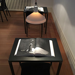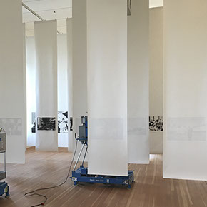 Leistungsumfang Planung/Montage Hängestruktur aus 80 Stahlseilen für die Präsentation der großformatigen Text-/ Fotobanner, Anstricharbeiten, Einrichtung Lesesaal, Aufbau Buchskulptur, Bannerhängung, Ausstellungslicht, A/V Medien, Vorbereitung Abendevent, inkl. Bestuhlung, Rednerpulte, Katalogausgaben. Abbau, Dokumentieren, Verpacken, Versand der Ausstellung.