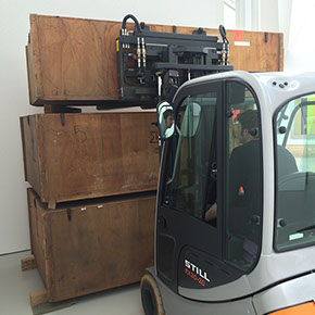 - Supportleistungen für Kunstspeditionen (Kistentransporte, Bereitstellung von Packtischen)