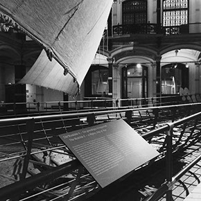 Leistungsumfang CAD-gestützte Planung, Vitrinentransporte, Medientechnik, Sondermontage Großsegel im Lichthof, Mountmaking, Exponateinrichtung, Grafik, Ausstellungsbeleuchtung, Auf- und Abbau Ausstellungswände