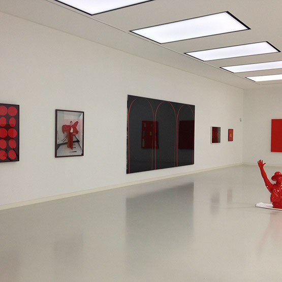 Die Sammlungspräsentation „ROTesque" zeigt künstlerische Positionen, bei denen Rottöne die Hauptrolle spielen. Durch die Fülle an Materialien und Bedeutungen der verschiedenen Gattungen ergibt sich eine spannende vergleichende Betrachtung. Zu sehen sind 55 Arbeiten von 43 Künstlern – unter ihnen Martin Creed, Lucio Fontana, Gotthard Graubner, Katharina Grosse, Anish Kapoor und François Morellet.