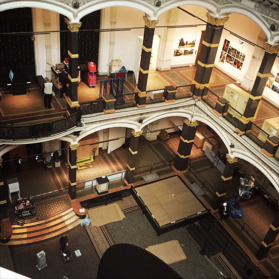Leistungsumfang Beratung, Datenbankentwicklung, CAD-gestützte Planung, Auf- und Abbau Ausstellungswände, Produktion von Exponaten, Rauminstallationen, Arthandling, Installation von Zeit- und Intervallschaltungen, Medieninstallationen, Sondermontage 12m Kreisscheibe, Grafik, Ausstellungsbeleuchtung, Verpacken der Exponate